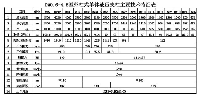 DW型系列外注式單體液壓支柱 DW型系列外注式單體液壓支柱可單獨或與金屬鉸接頂梁配套使用。用于煤層傾角小于25度緩傾斜回采工作面支護頂板.采取措施也可用于傾角25-35度網(wǎng)采工作面的支護,還可用于綜合機械化采煤的端頭支護。目前,該支柱普遍應用于全國各大煤礦,安全性可靠,深受廣大客戶(hù)歡迎。特點(diǎn):該支柱及初撐均用乳化液泵站,初撐力大而均勻,而操作更為方便安全。